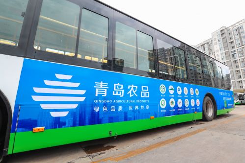 公交車車體上的青島農(nóng)品標(biāo)識(shí)和品牌理念。柳棟/攝