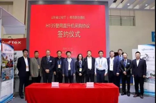 10日上午,青島聯合通航與山東省公安廳在直博會現場簽署了空客H135警用直升機1架采購合同和2架采購協議。