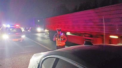 身邊不時(shí)有呼嘯而過的大貨車,伴隨著巨大的轟響,似一陣狂風(fēng)刮過,民警在應(yīng)急車道上處理事故時(shí),甚至感覺全身一震……10月6日晚,早報(bào)記者趕到同三高速公路交警大隊(duì)二中隊(duì),和李涌的同事一起夜巡,感受李涌生前在此4年零3個(gè)月的工作日常。