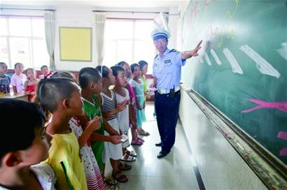 李涌給小朋友普及交規(guī)。觀(guān)海新聞/青島早報(bào)首席記者 孫啟孟 攝