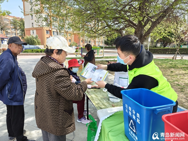 工作人員在現場進行垃圾分類宣講,就垃圾污染的現狀,垃圾分類的意義、方法和相關政策,以及城陽區(qū)垃圾分類工作開展情況等內容,為居民進行詳細講解,引導居民主動參與垃圾分類。