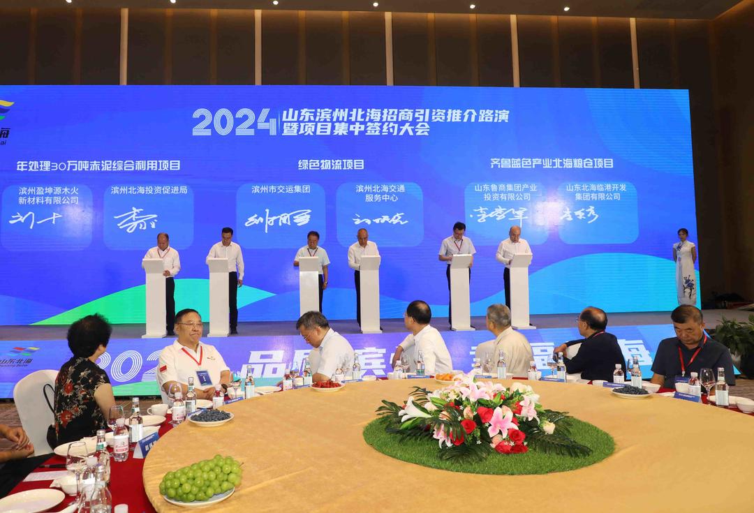 7月27日,2024山東濱州北海招商引資推介路演暨項目集中簽約大會在青島海天金融中心舉行。