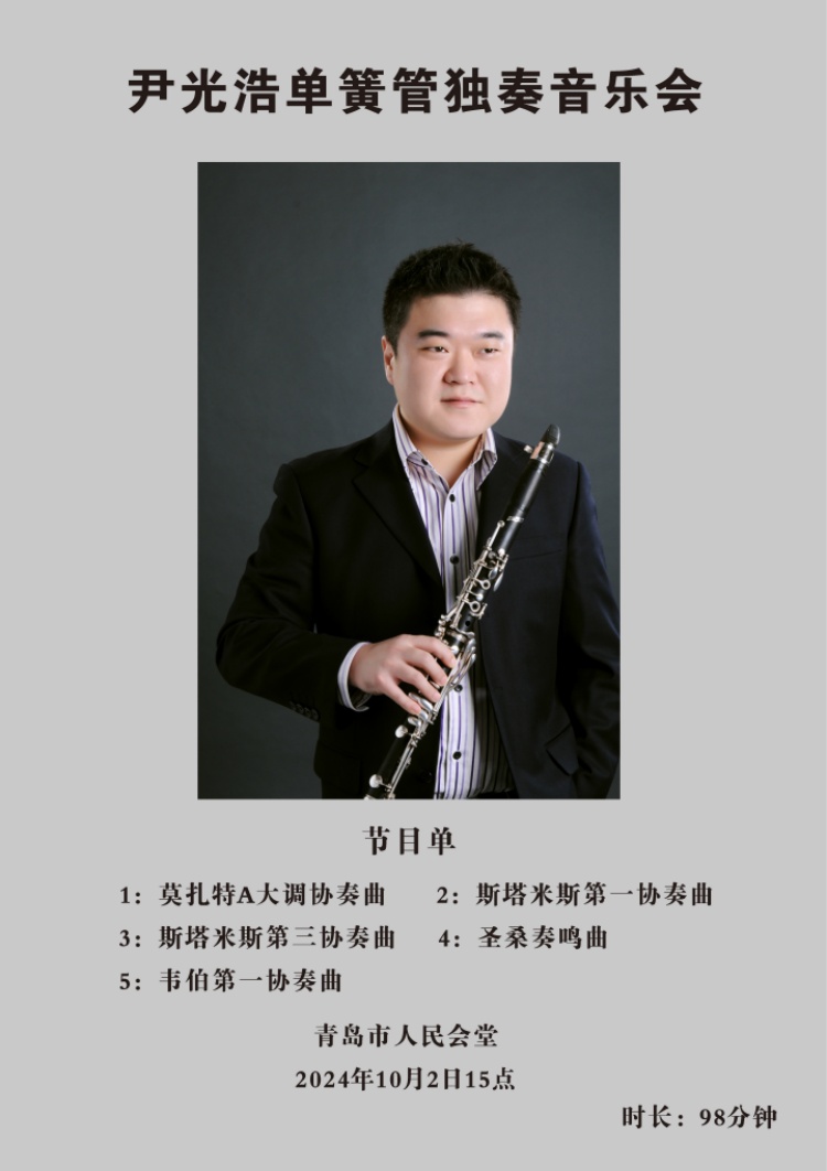 在日常演出中,單簧管在交響樂團里有著重要的作用,而在獨奏場合,單簧管全面展現(xiàn)了優(yōu)雅、深沉的風格,每首樂曲都展現(xiàn)出獨奏家對音樂的深刻理解和精湛詮釋。業(yè)內(nèi)人士表示,單簧管近年來在青島發(fā)展迅速,高水準單簧管大師班相繼落地,一批單簧管演奏家也從青島生長出來。隨著尹光浩這樣的單簧管演奏家不斷出現(xiàn),青島交響樂事業(yè)也日臻成熟。