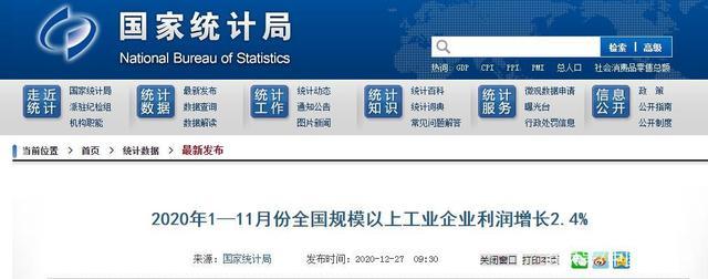 統(tǒng)計局:1—11月份全國規(guī)模以上工業(yè)企業(yè)利潤增長2.4%